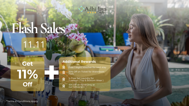 Adhi Jaya Hotel is located right in the heart of Kuta, 5 minutes from the Ngurah Rai Airport. A few steps away to Waterbom Bali and Discovery Shopping Mall at the doorstep, A Brief walk to the Kuta Beach. Close to upscale shopping area and nightlife scene.