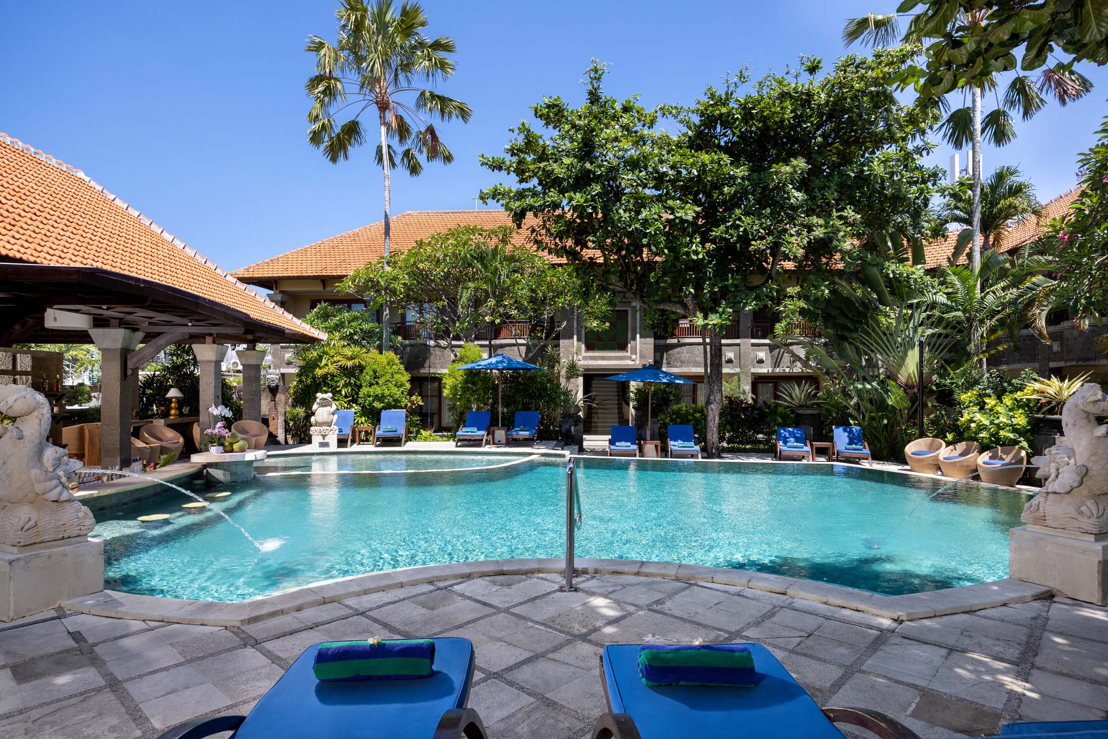 Comfortable loungers, attentive service, and a serene ambiance create the perfect setting for couples, families, and solo travelers alike. Whether you start your morning with a gentle dip or relax in the afternoon with a cool drink by the water, our swimming pool offers a calm sanctuary in the vibrant heart of Kuta.